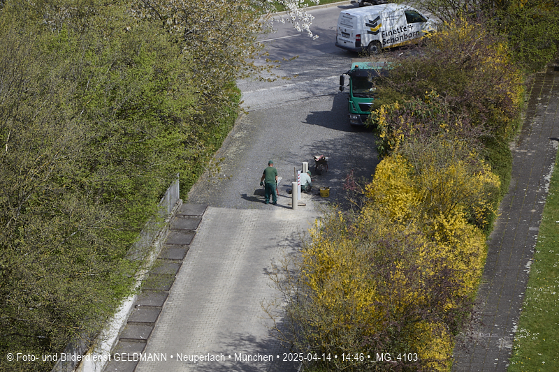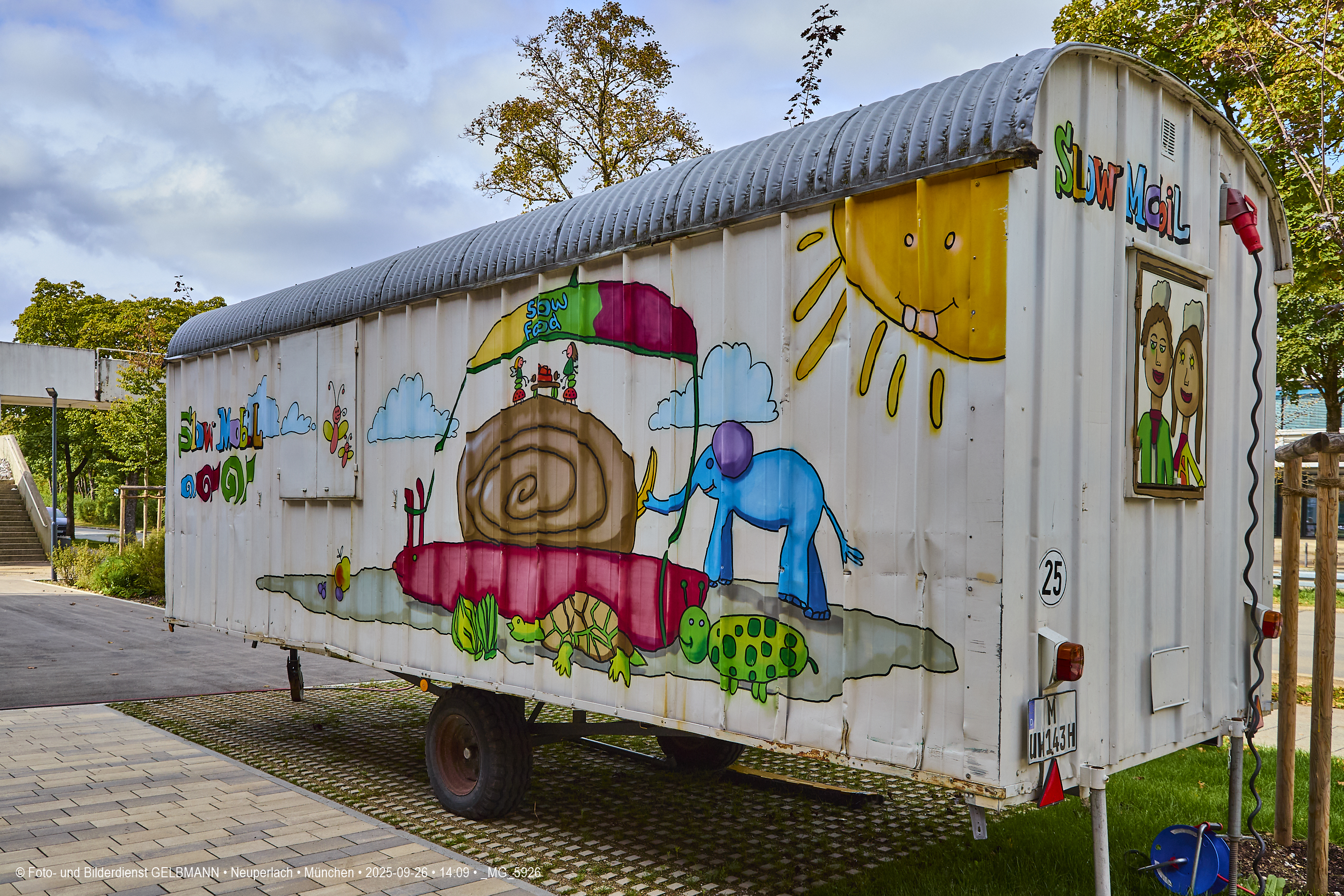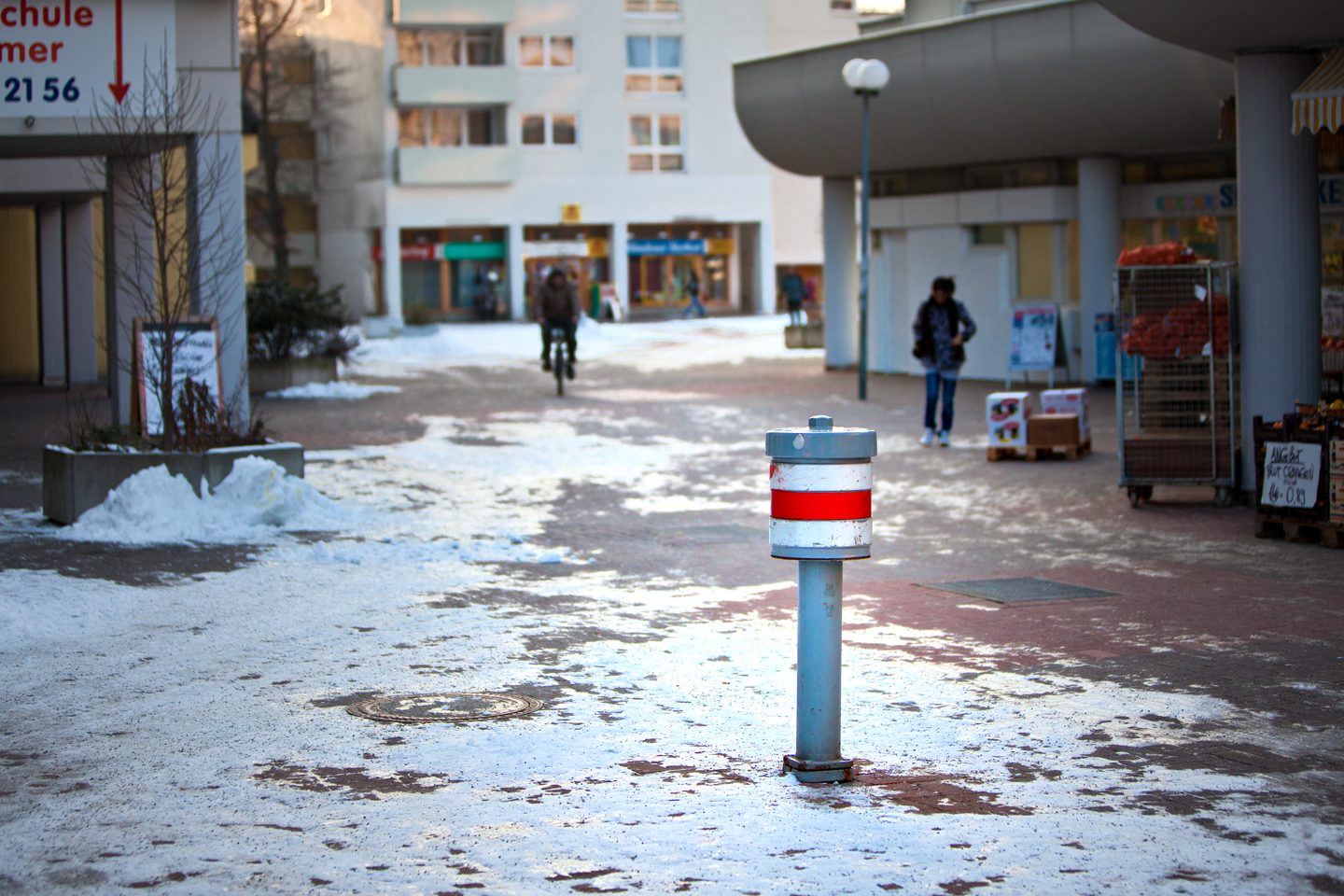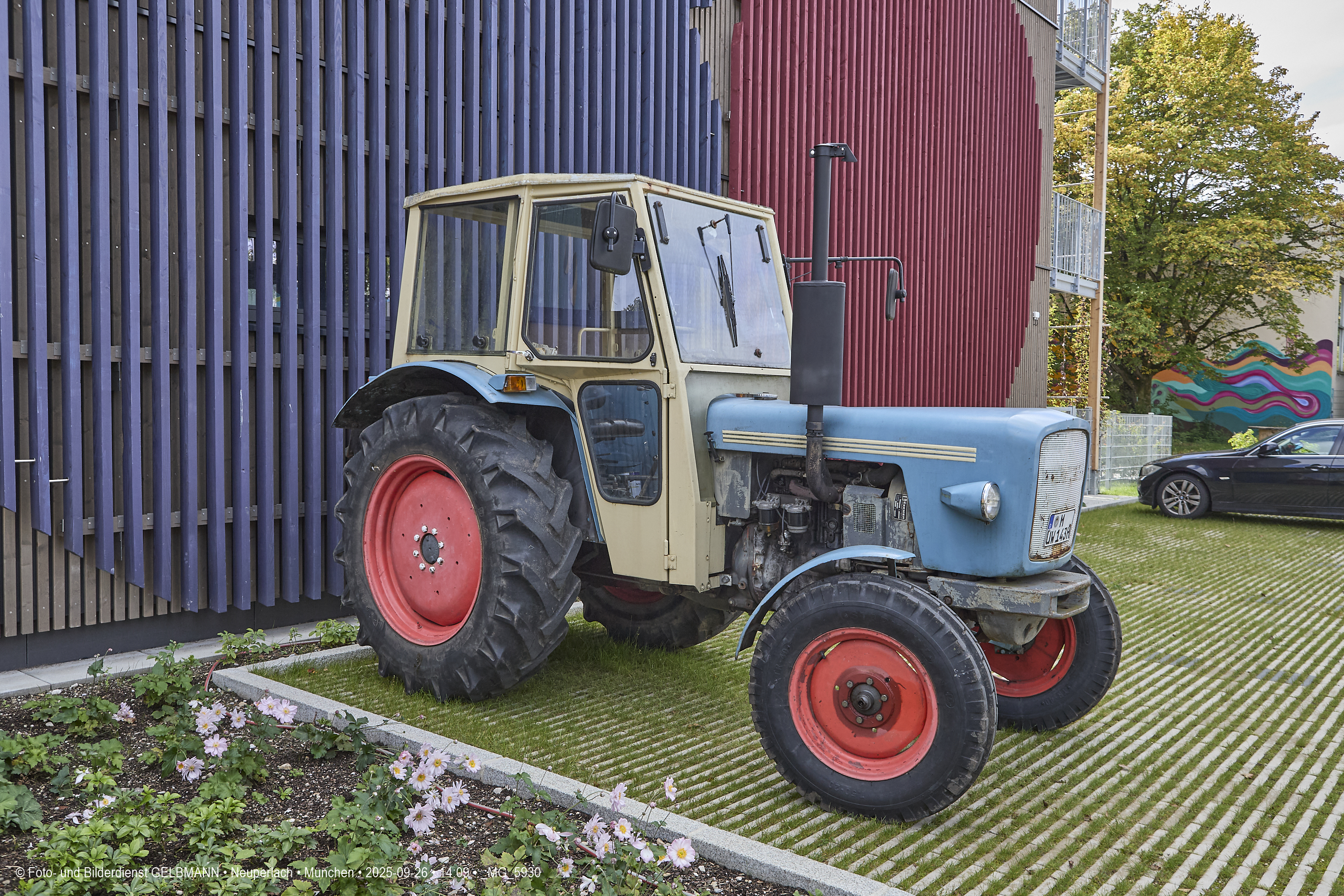 Immer wieder wurde der Pfosten an der Tiefgarageneinfahrt am Karl-MArx-Ring, von ungeübte Autofahrer umgefahren. Daher wurde beschlossen, zwei Schutzpfosten, einer davor und der andere dahinter, fest aufzustellen. Im April 2025 begannen hier zu die Arbeiten. Anfangs hatten sie noch keine Farbe, aber dies änderte sich dann ab dem August. Im Hintergrund zu den schönen Farben, meine Burg, das Marx-Zentrum mit dem Peschelanger 7.