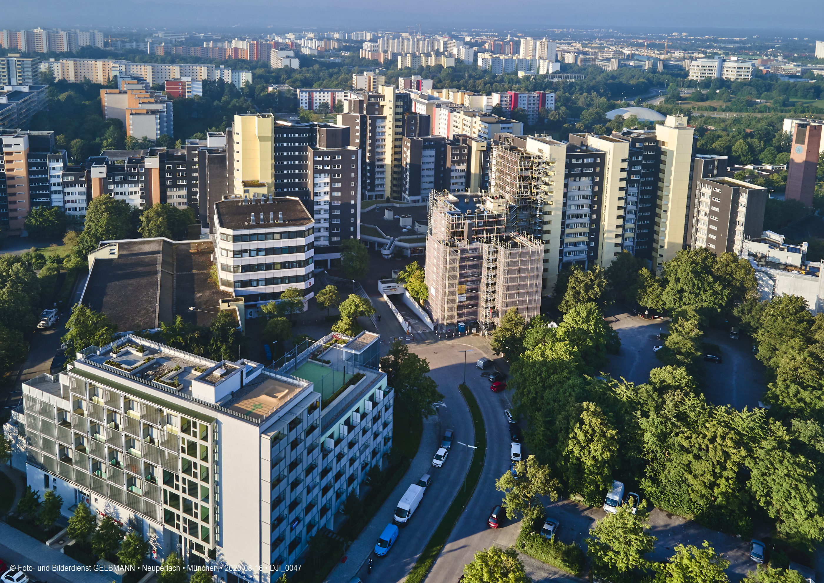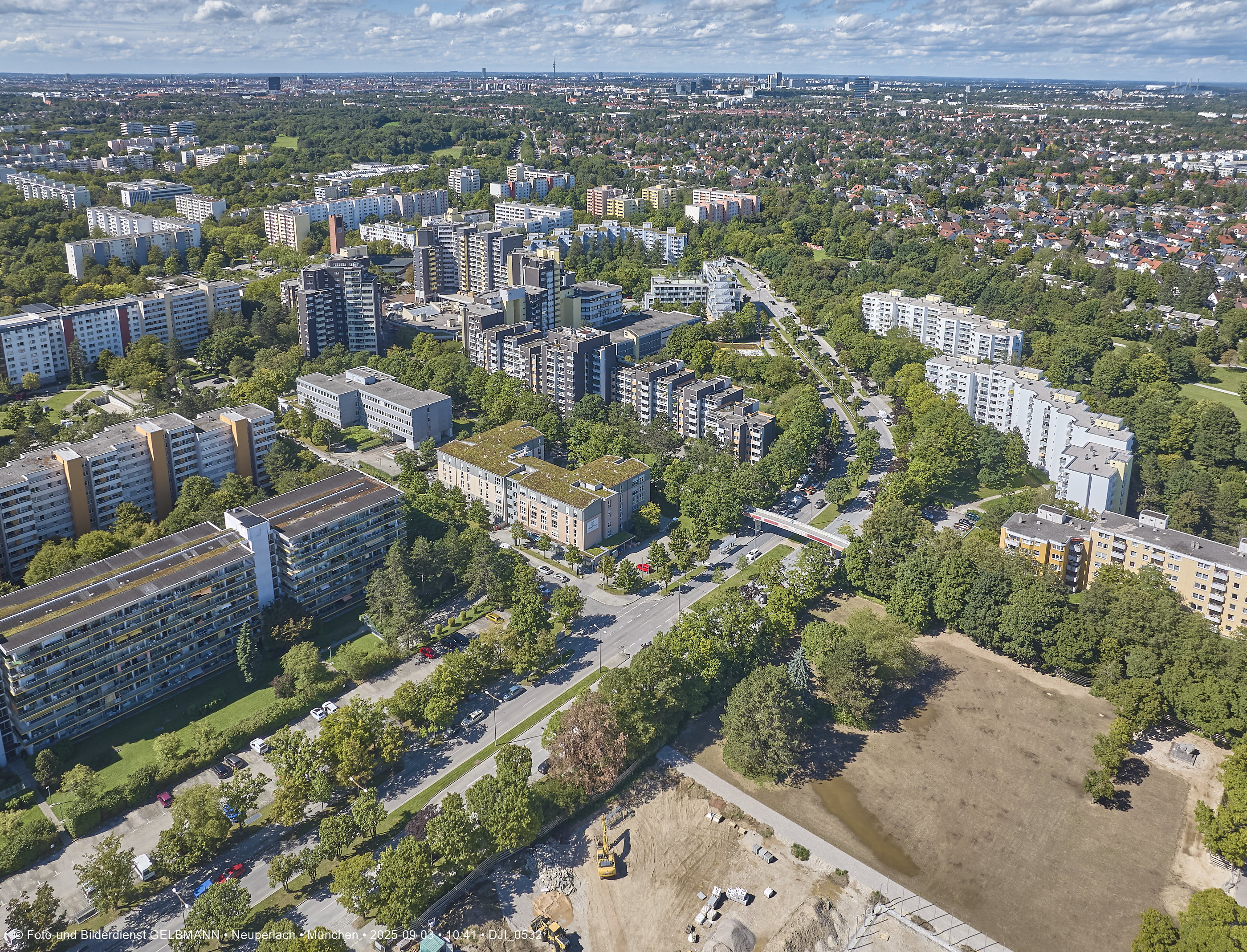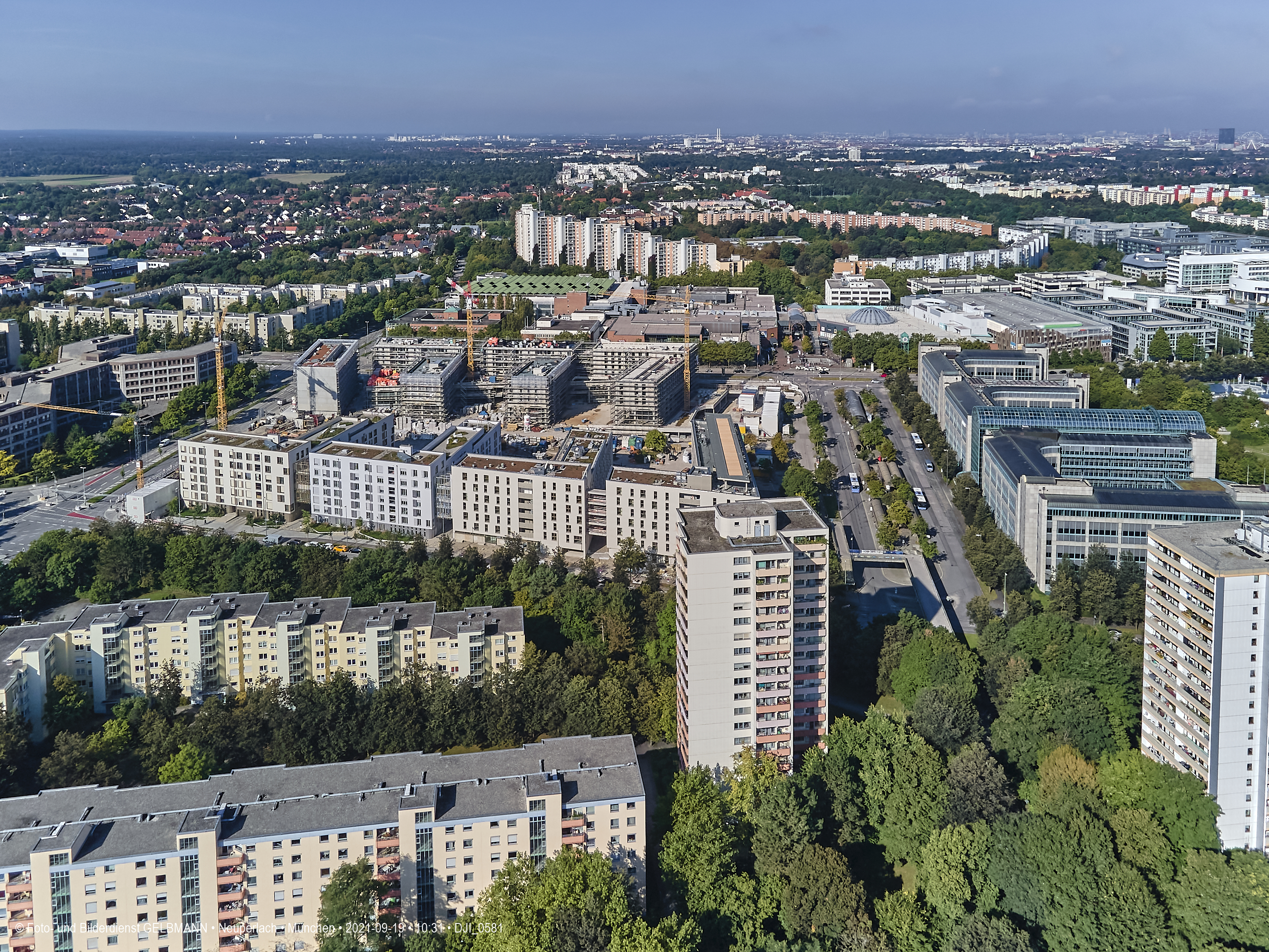 "Im Münchner Stadtteil Neuperlach entsteht ein neues Quartier mit Wohnungen, Kitas und Geschäften.