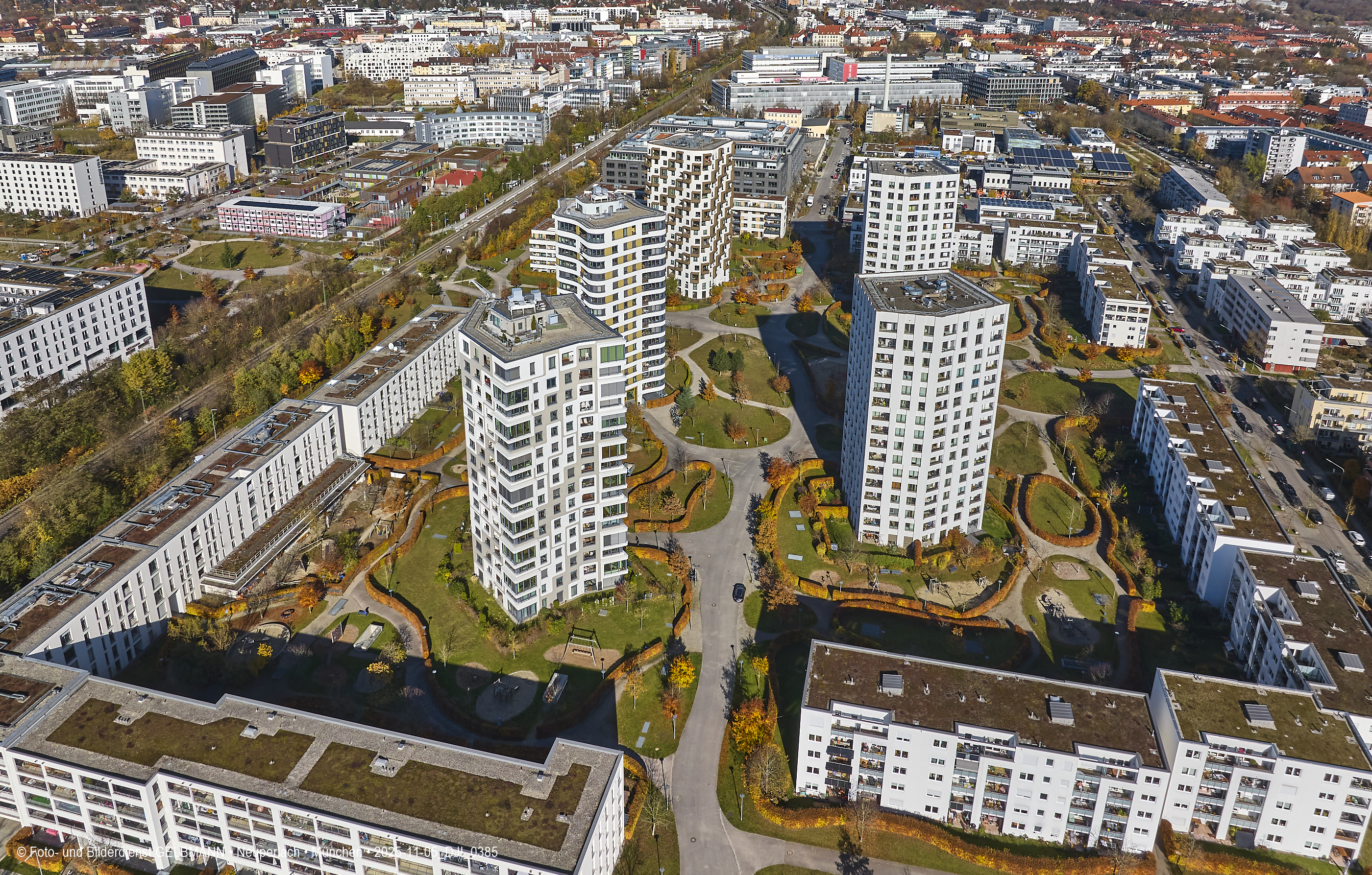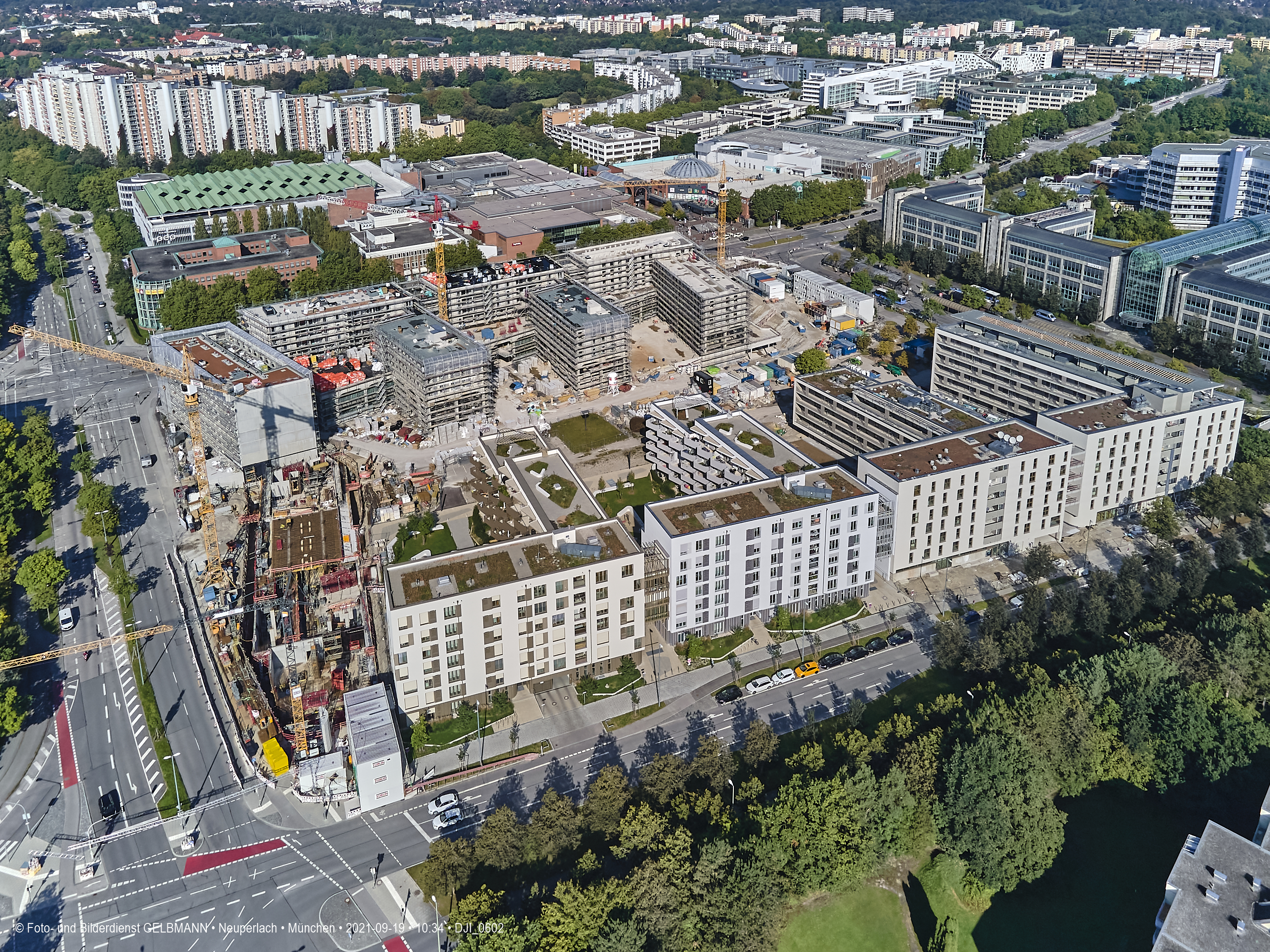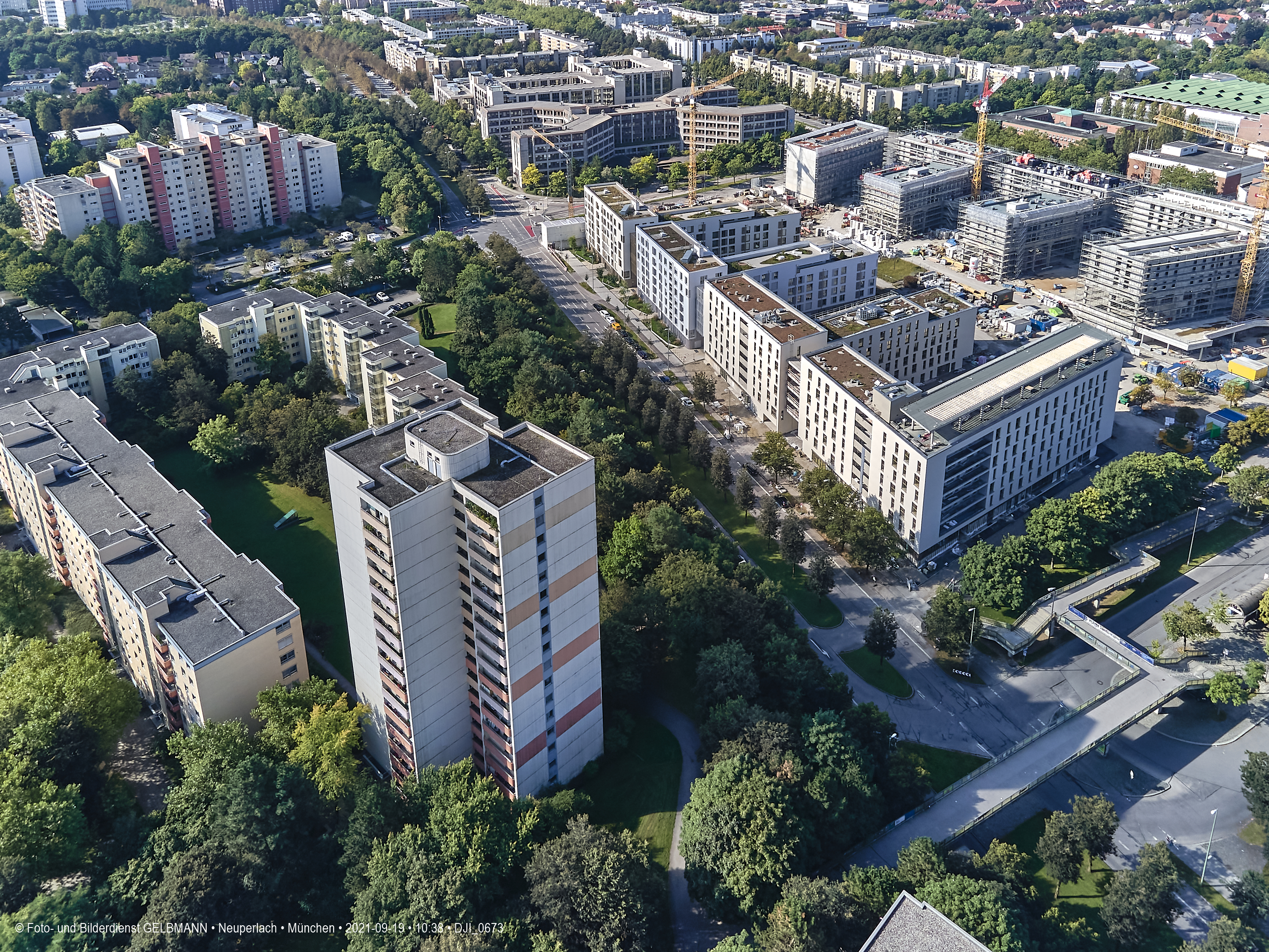 "Im Münchner Stadtteil Neuperlach entsteht ein neues Quartier mit Wohnungen, Kitas und Geschäften.