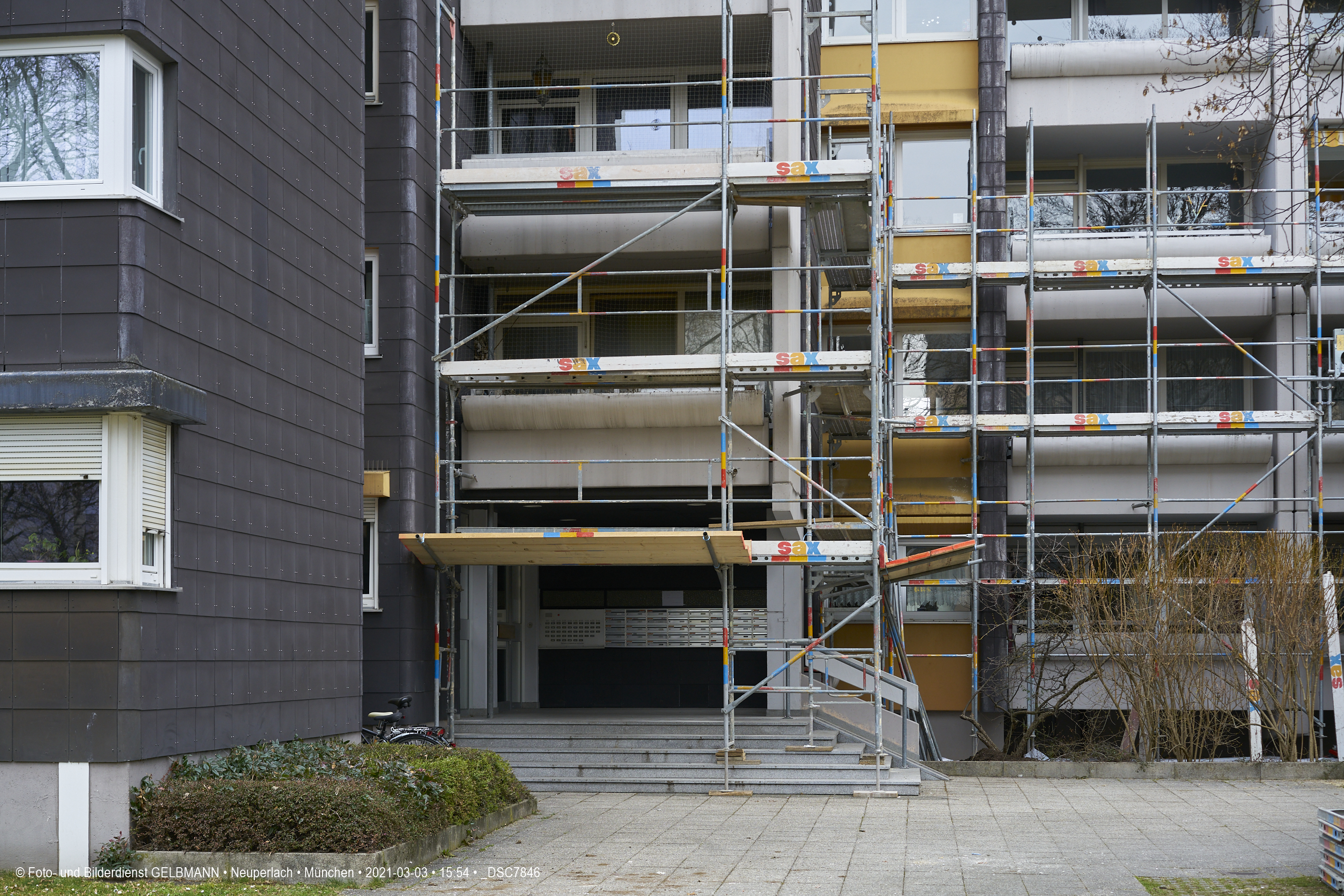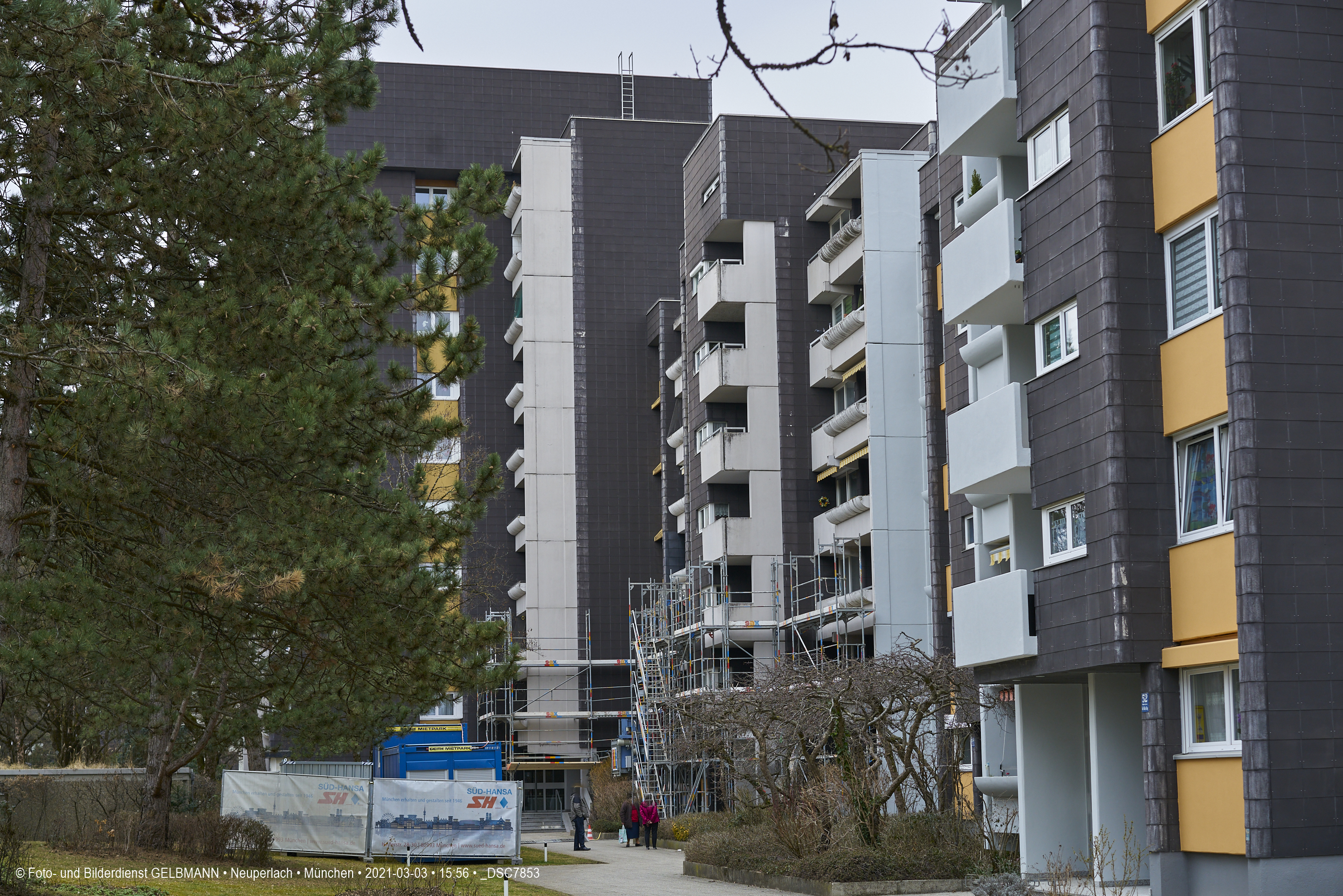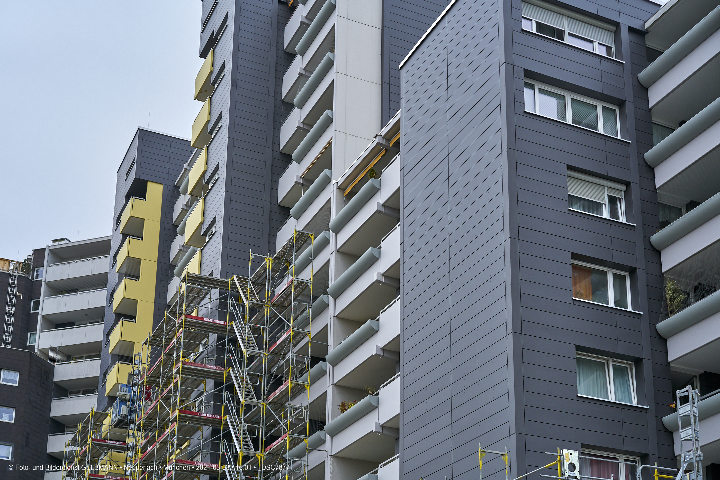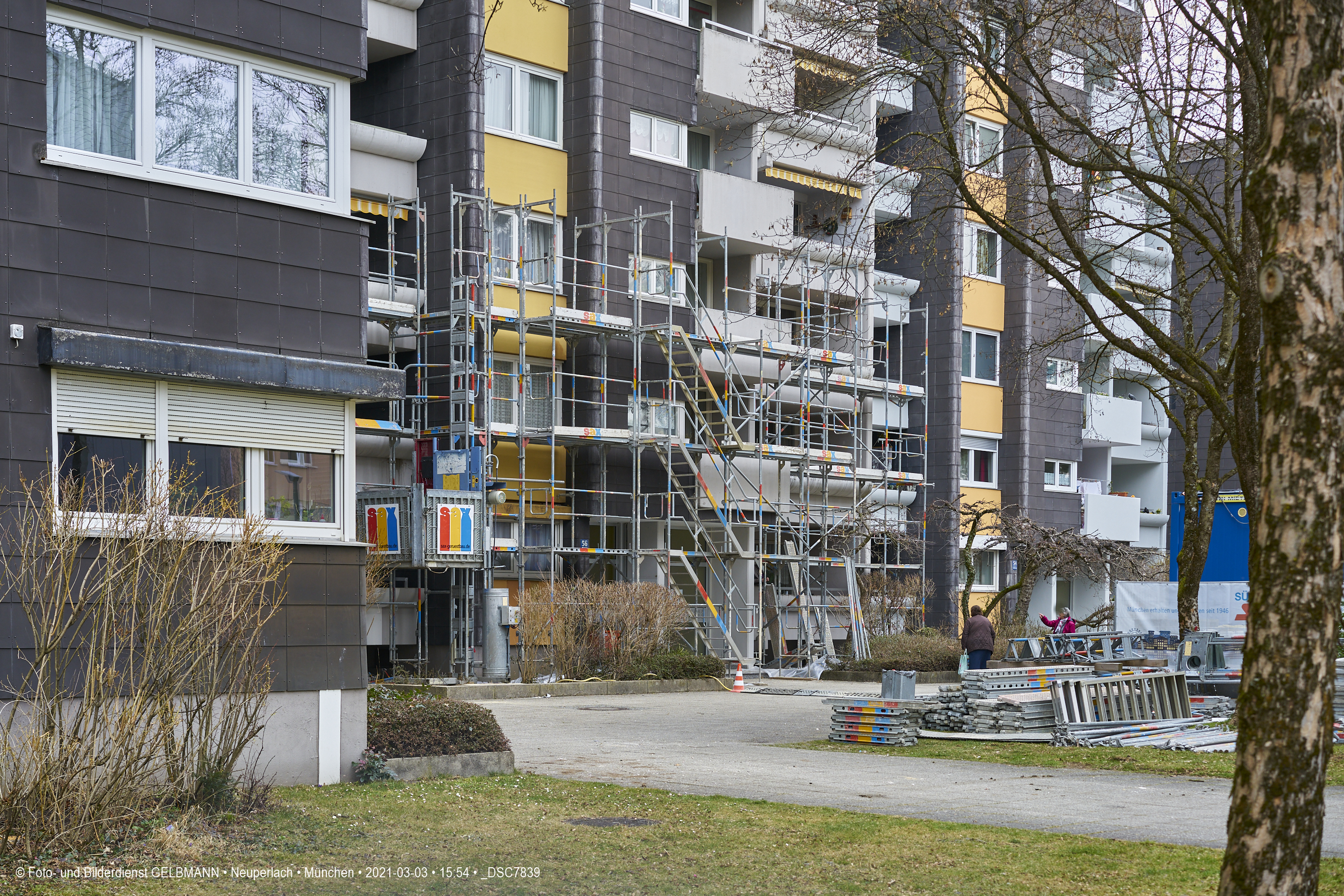 Fast wie abgesprochen, aber beide Sanierungen haben nichts miteinander zu tun. Planungen und Sanierungen haben eine lange Vorlaufzeit, die schwer zu koordinieren wäre. Wie verschiedene Wohnanlagen, zwei verschiedene WEG-Verwaltungen, können solche Sanierungen nicht miteinander absprechen und so planen. Am Karl-Marx-Ring 52-62 wurde eine kleine Sanierung, bei mir im Marx-Zentrum, eine sehr große Fassadensanierung mit energetischem Dämmmaterial durchgeführt. Da das Marx-Zentrum so etwas wie die Seele von Neuperlach ist, beteiligt sich auch die Stadt München mit Fördergelder an dieser und auch an den kommenden Sanierungen meiner Burg.