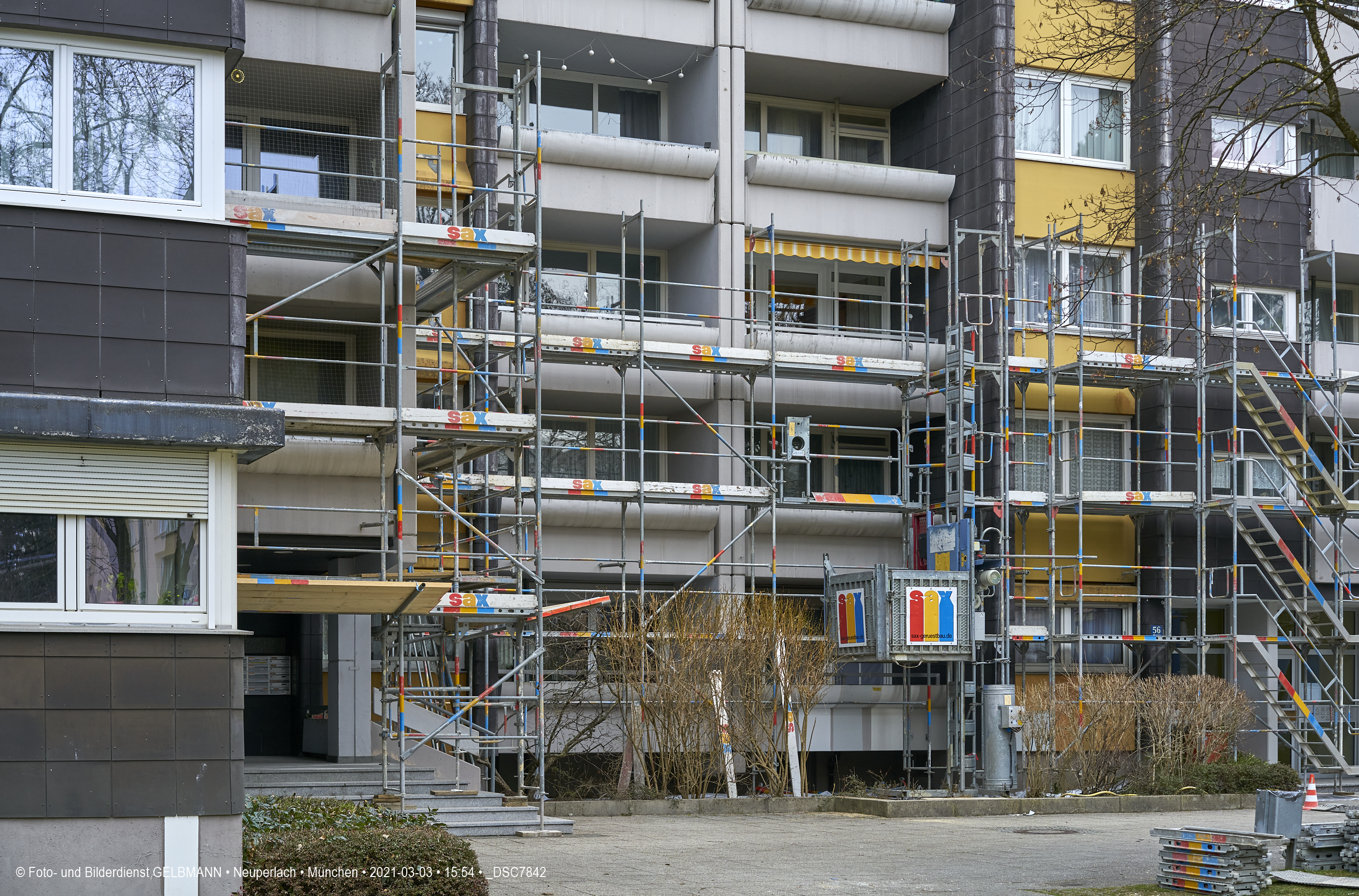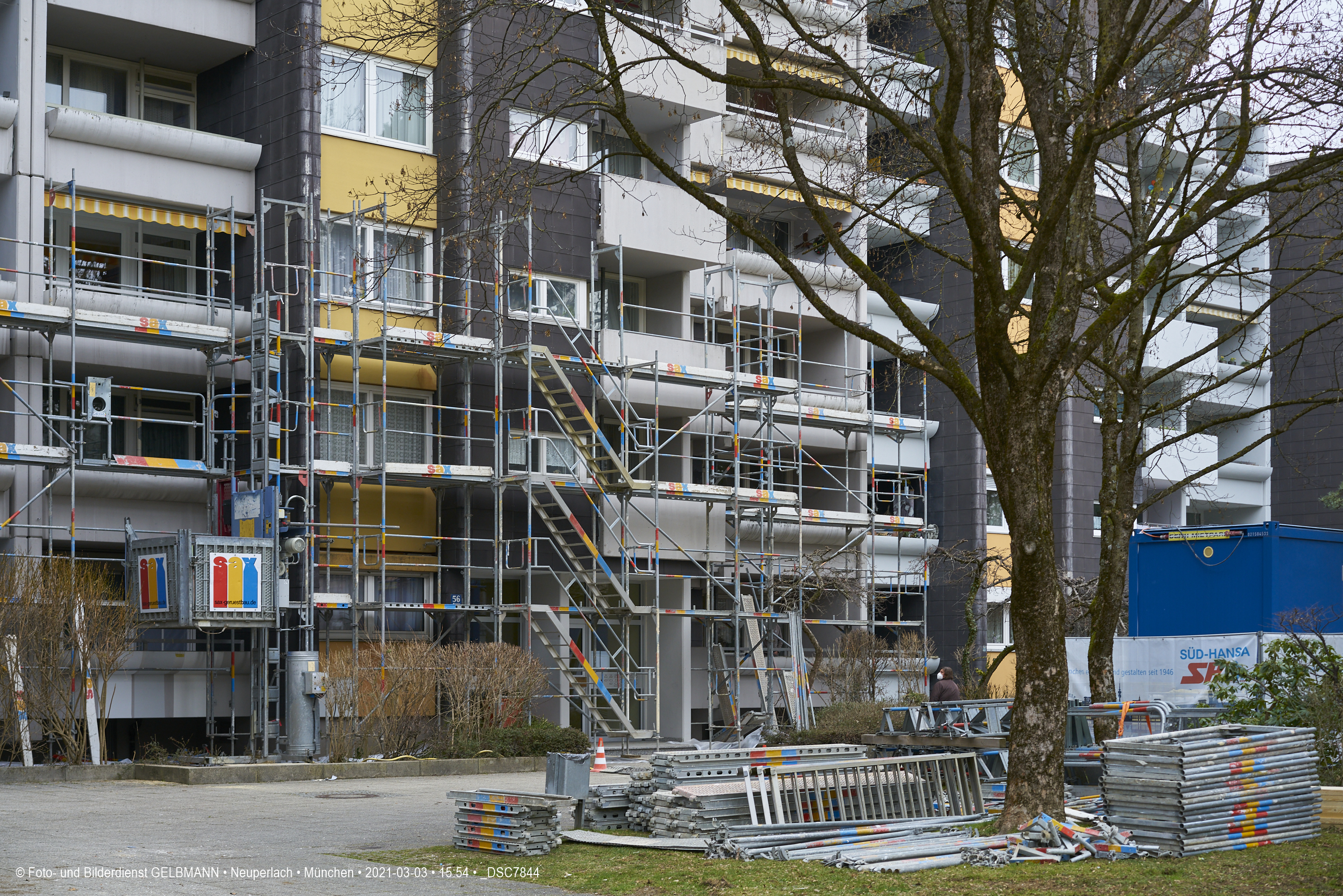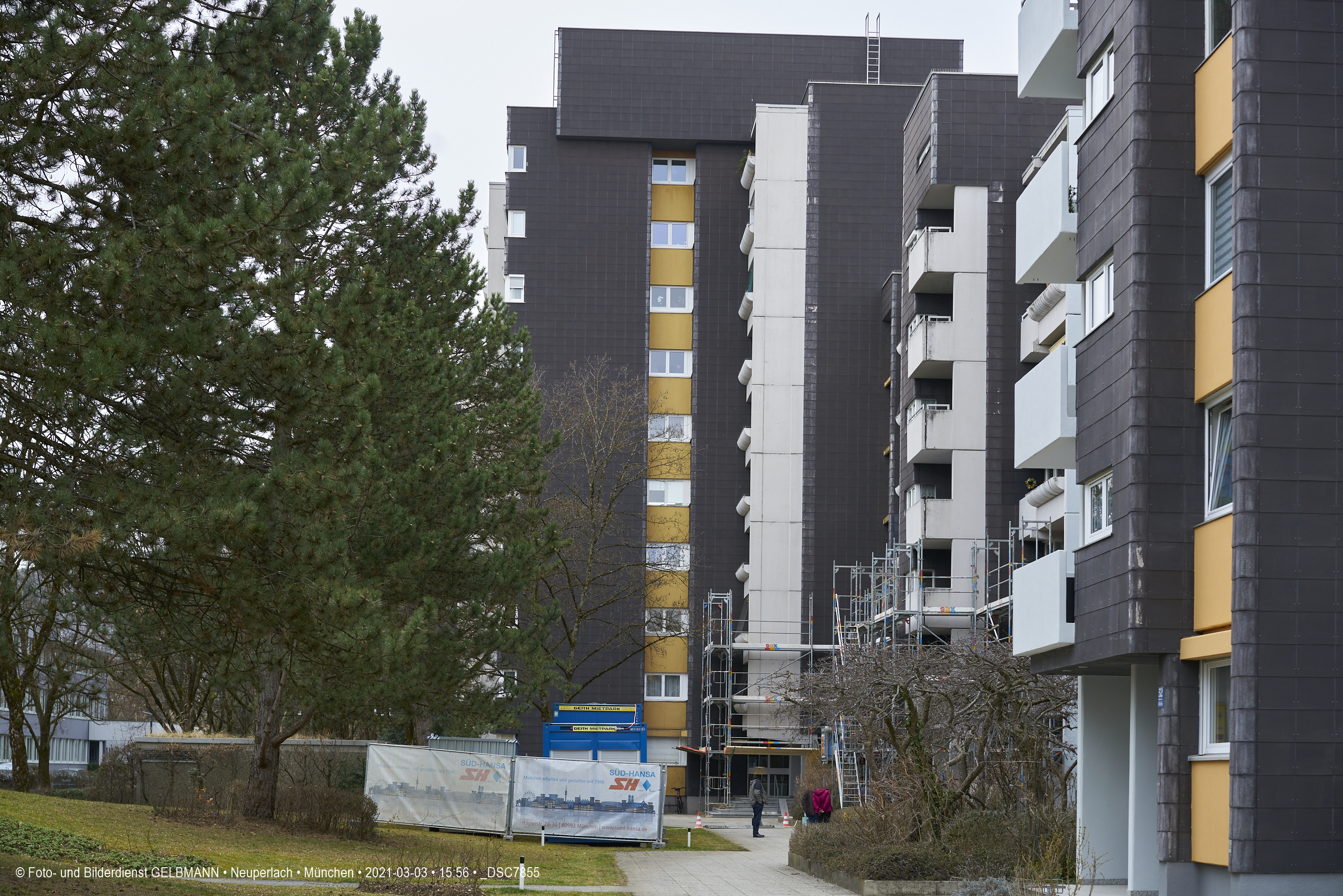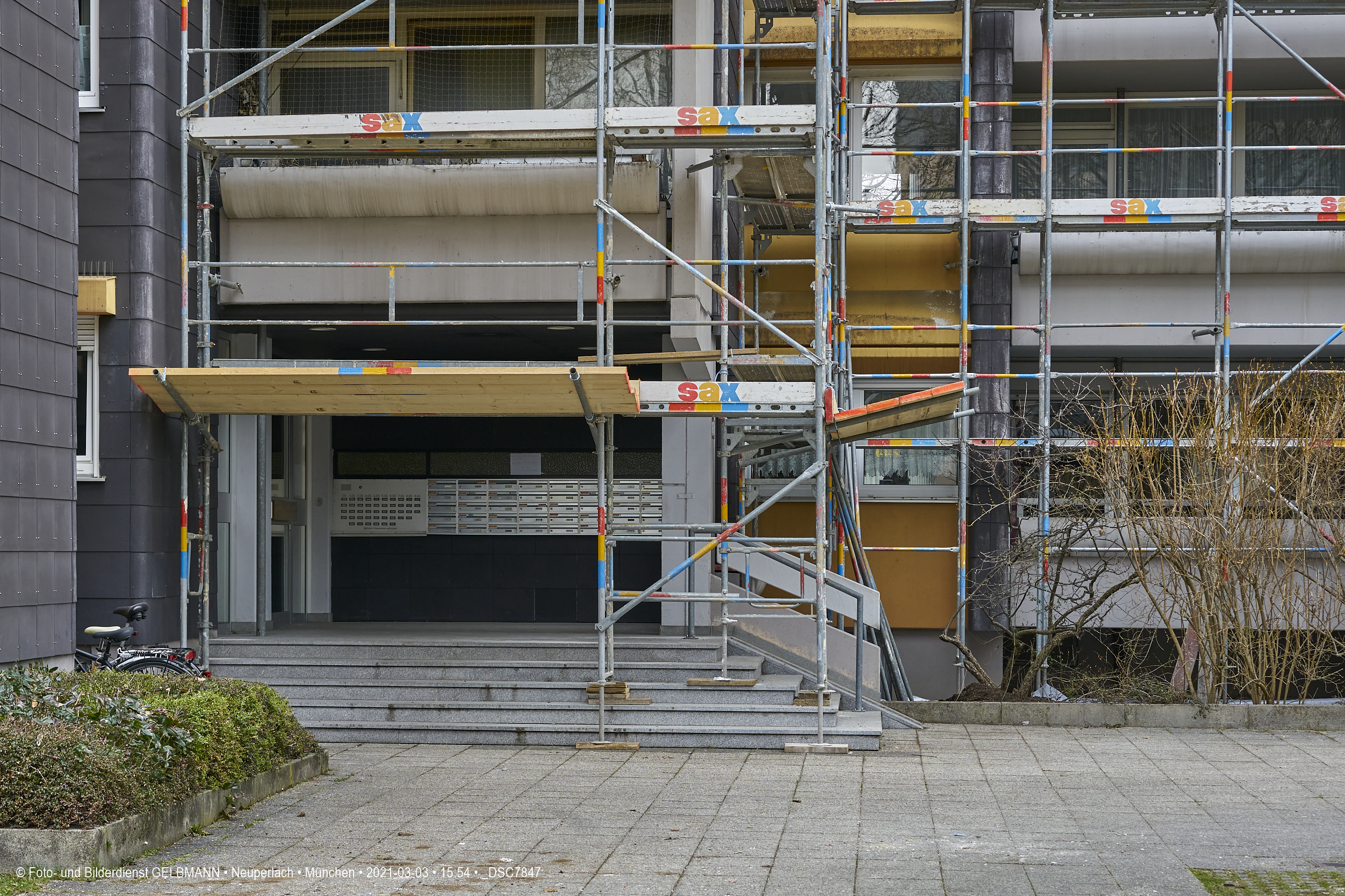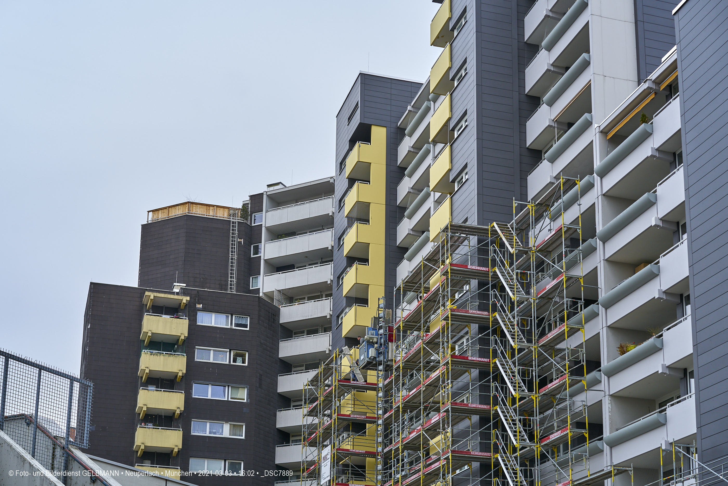 Fast wie abgesprochen, aber beide Sanierungen haben nichts miteinander zu tun. Planungen und Sanierungen haben eine lange Vorlaufzeit, die schwer zu koordinieren wäre. Wie verschiedene Wohnanlagen, zwei verschiedene WEG-Verwaltungen, können solche Sanierungen nicht miteinander absprechen und so planen. Am Karl-Marx-Ring 52-62 wurde eine kleine Sanierung, bei mir im Marx-Zentrum, eine sehr große Fassadensanierung mit energetischem Dämmmaterial durchgeführt. Da das Marx-Zentrum so etwas wie die Seele von Neuperlach ist, beteiligt sich auch die Stadt München mit Fördergelder an dieser und auch an den kommenden Sanierungen meiner Burg.