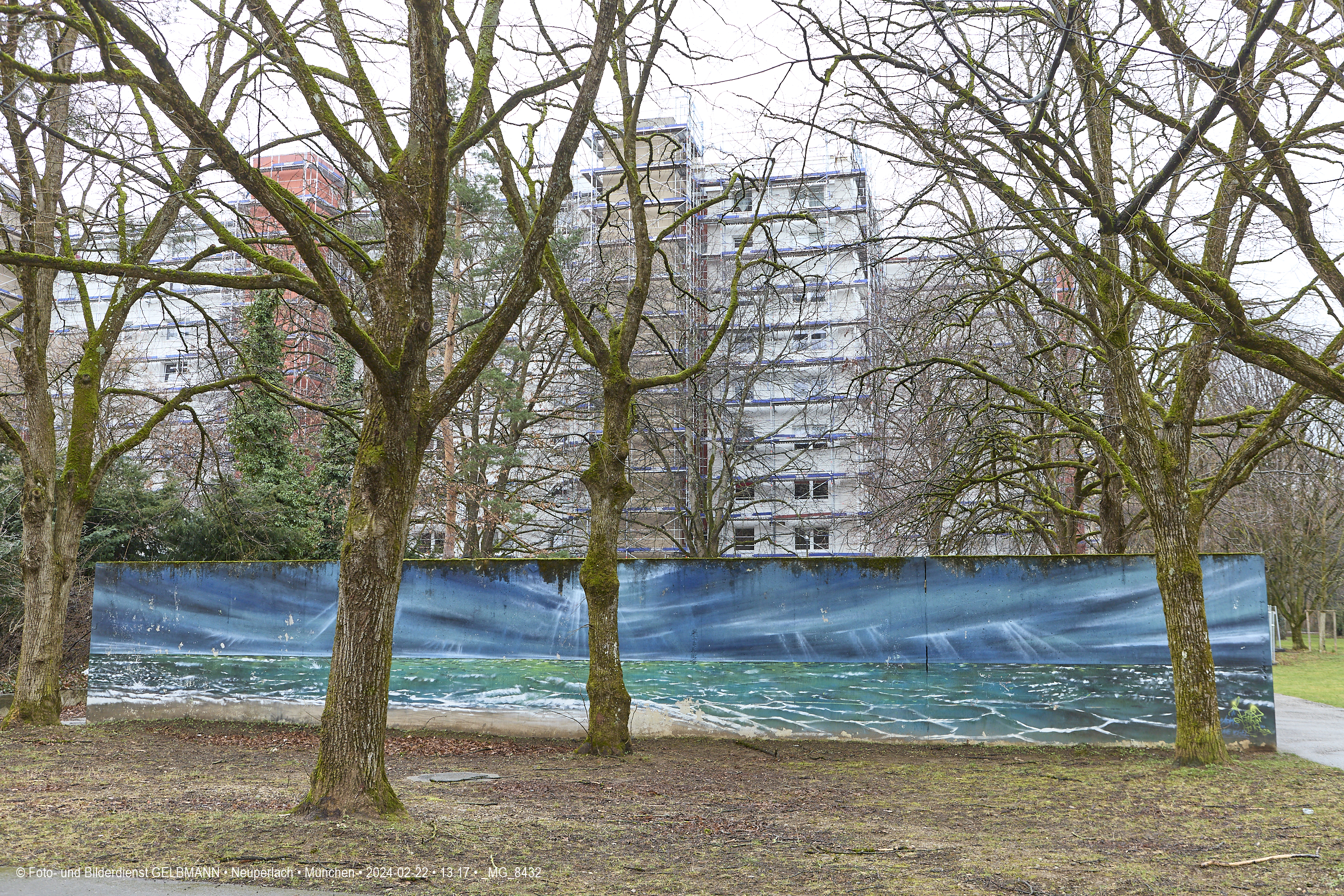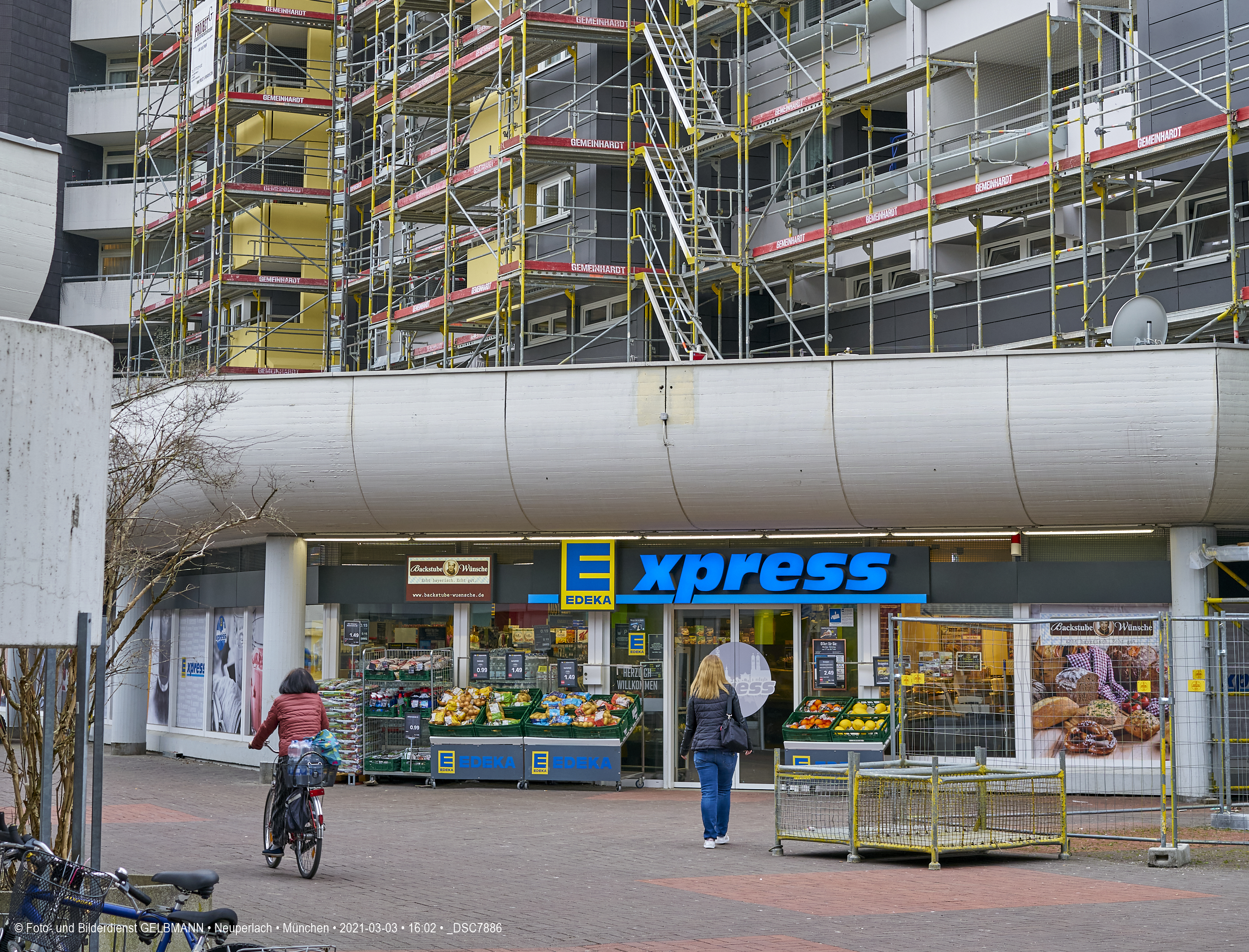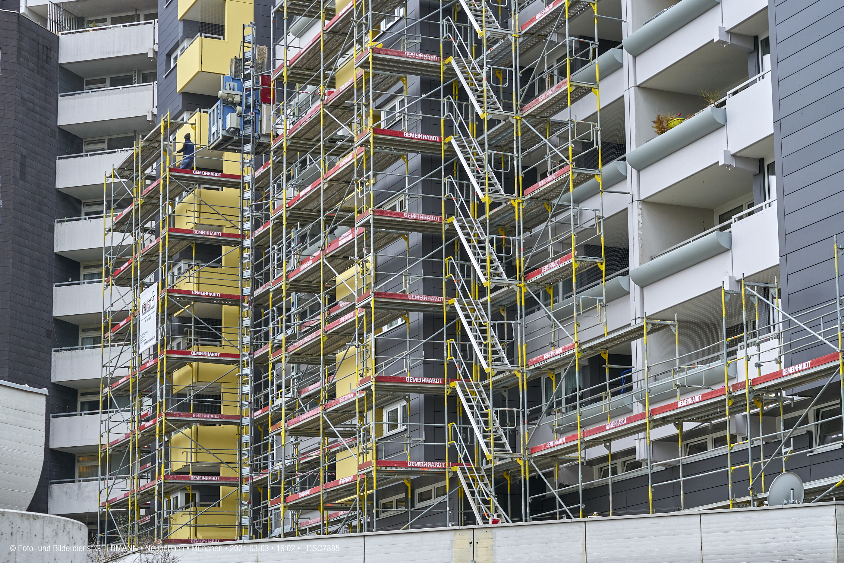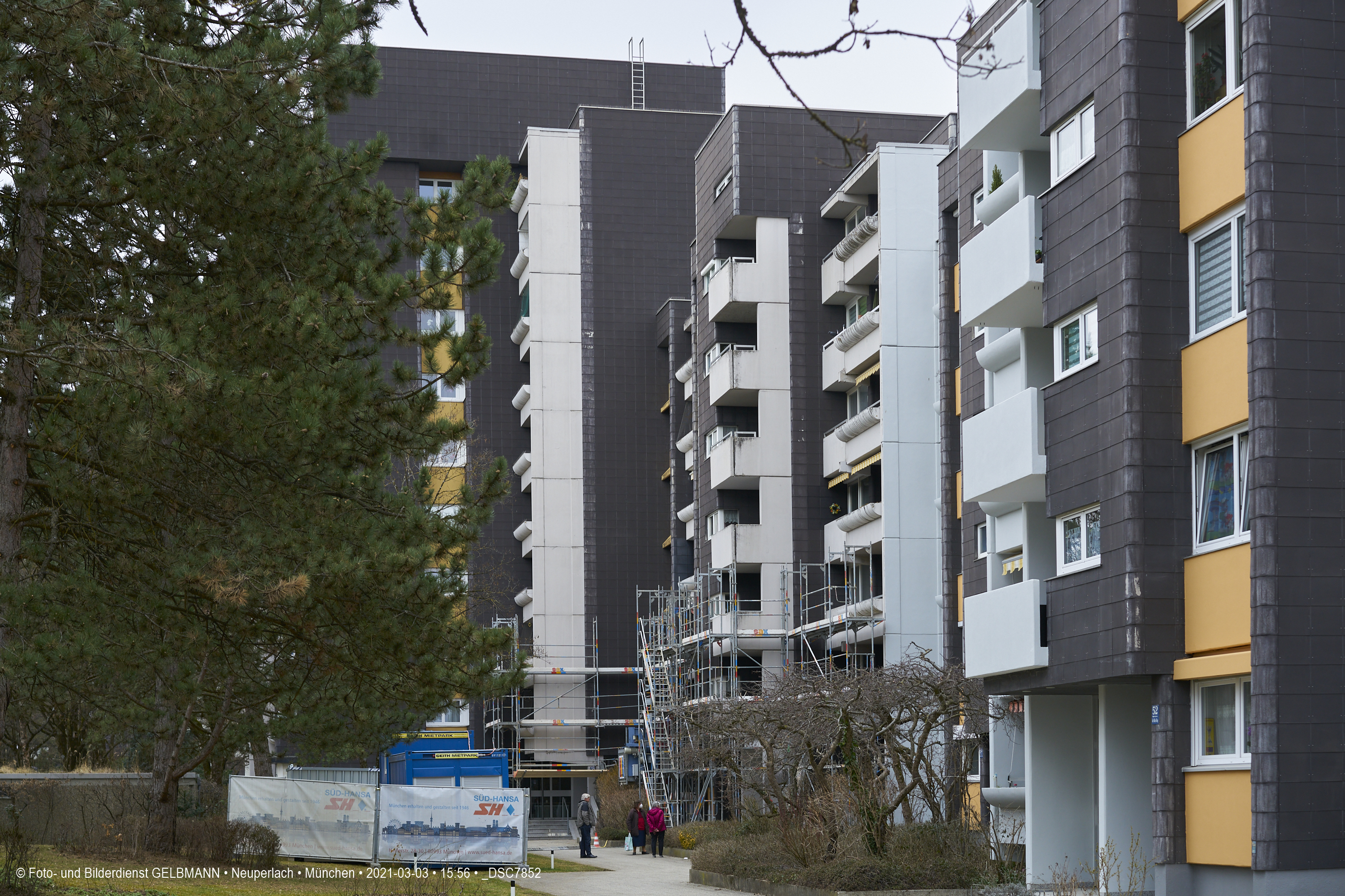 Fast wie abgesprochen, aber beide Sanierungen haben nichts miteinander zu tun. Planungen und Sanierungen haben eine lange Vorlaufzeit, die schwer zu koordinieren wäre. Wie verschiedene Wohnanlagen, zwei verschiedene WEG-Verwaltungen, können solche Sanierungen nicht miteinander absprechen und so planen. Am Karl-Marx-Ring 52-62 wurde eine kleine Sanierung, bei mir im Marx-Zentrum, eine sehr große Fassadensanierung mit energetischem Dämmmaterial durchgeführt. Da das Marx-Zentrum so etwas wie die Seele von Neuperlach ist, beteiligt sich auch die Stadt München mit Fördergelder an dieser und auch an den kommenden Sanierungen meiner Burg.