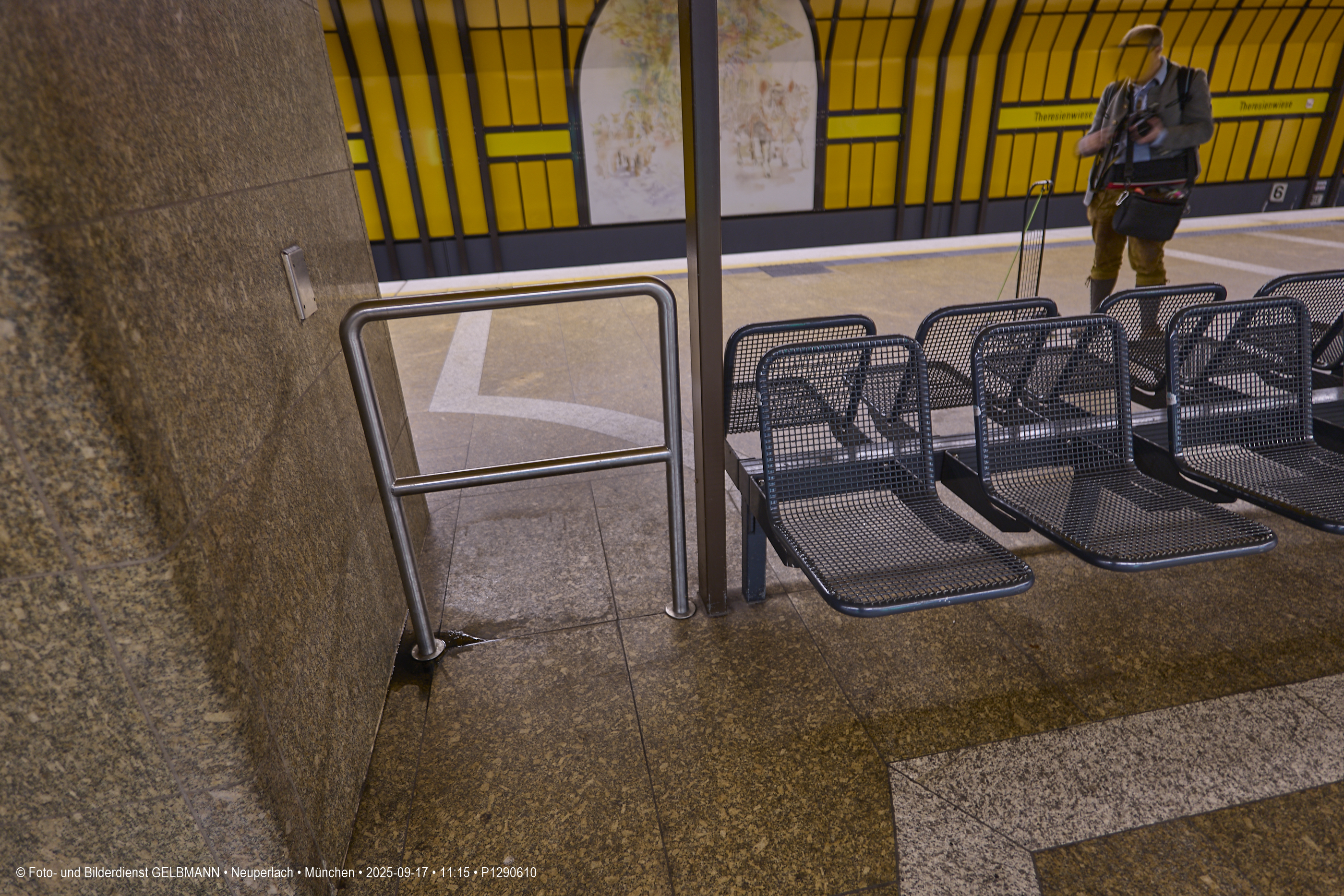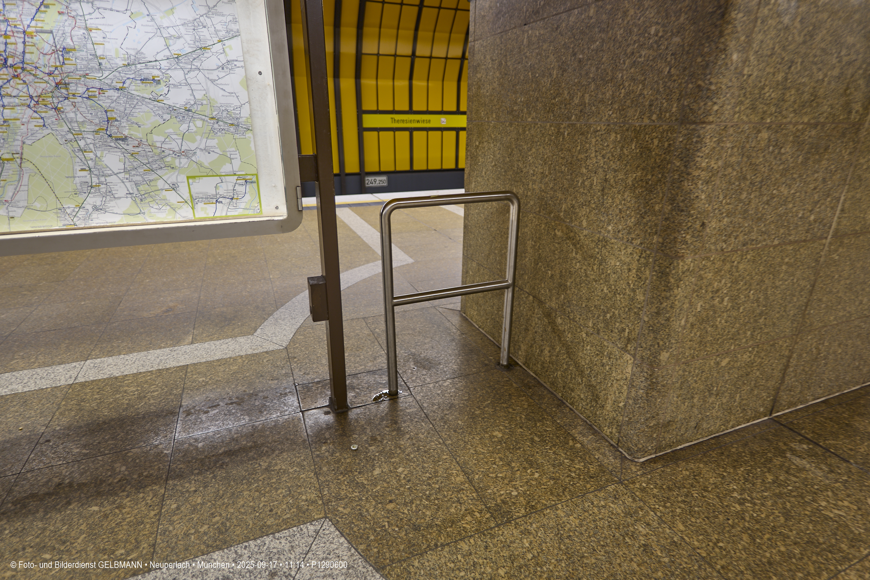 Offensichtlich verspricht man von einer Trennung der beiden Bahnsteige in der U-Bahn Haltestelle Theresinewiese, einen geordneteren Ablauf des Säuferfestes, sprich Oktoberfest. Ein Wechsel zum anderen Bahnsteig geht nur an manchen Stellen, mit Bücken und Kriechen. Die Edelstahlgeländer sind bei der nächsten Preiserhöhung eingerechnet.